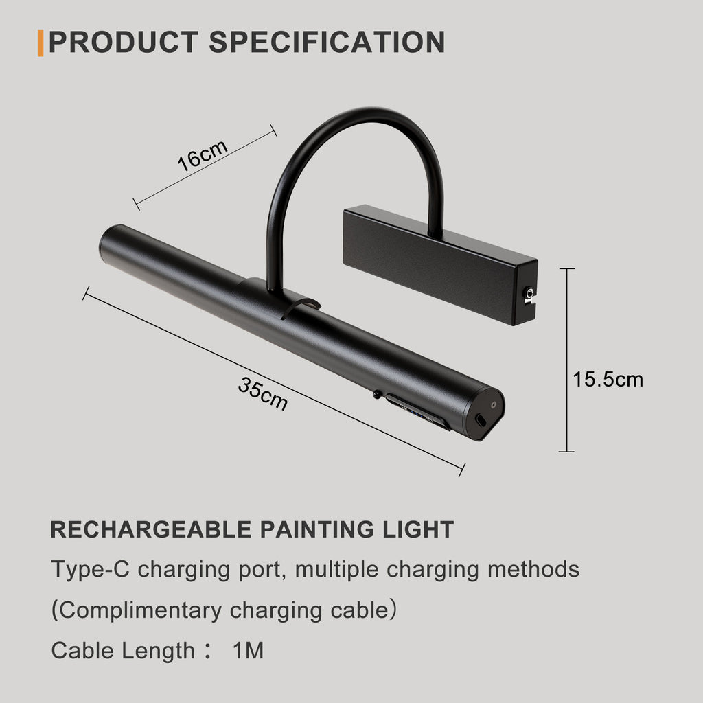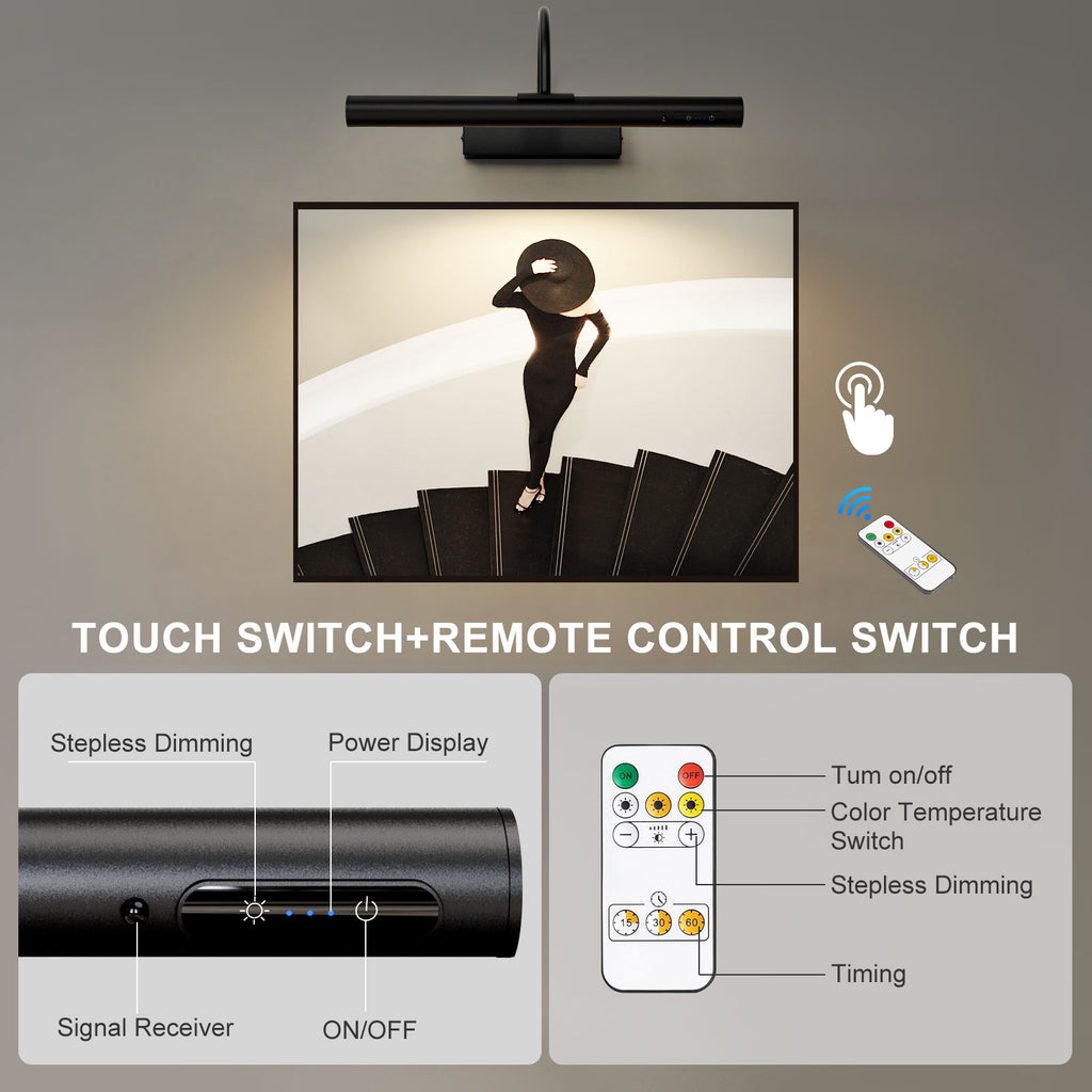 Rechargeable Picture Light with Remote, Dimmable and 3 Colour Temps, Battery Operated Wall Light