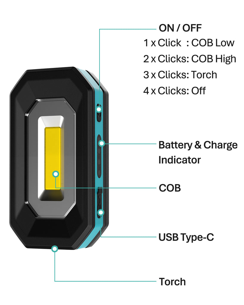 Our Rechargeable work light is the perfect addition to your toolbox, its small size combined with its various light modes and strong magnetic stand can help illuminate any job you need to work on, with a rechargeable battery to keep it going longer that other work lights.