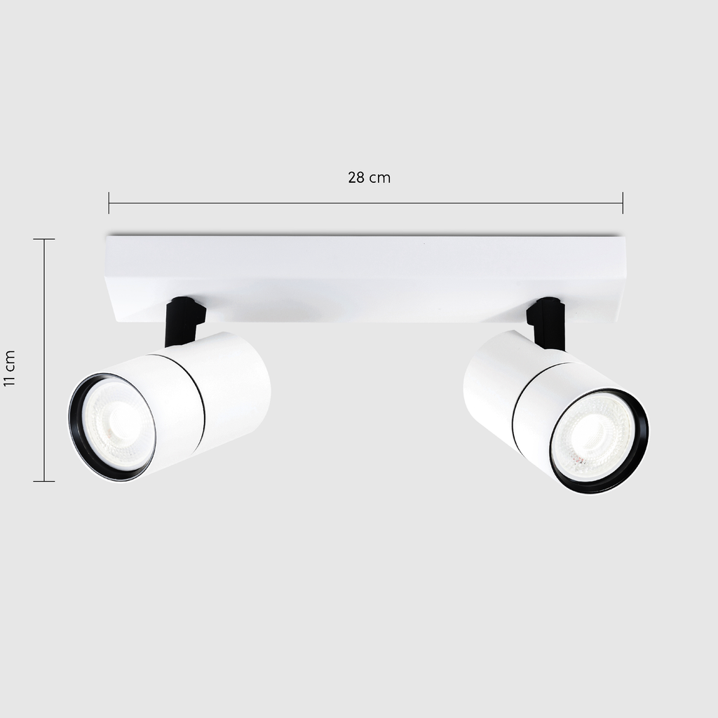 2 Light Spotlight White, 2x GU10 35W Max, W: 28cm, D: 6cm, H: 11cm Weight: 0.64kg Non-Dimmable Class 1, IP20