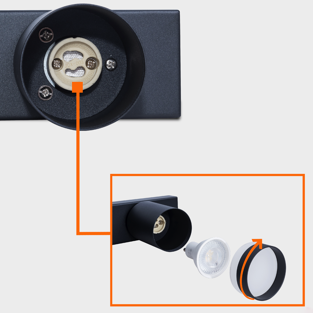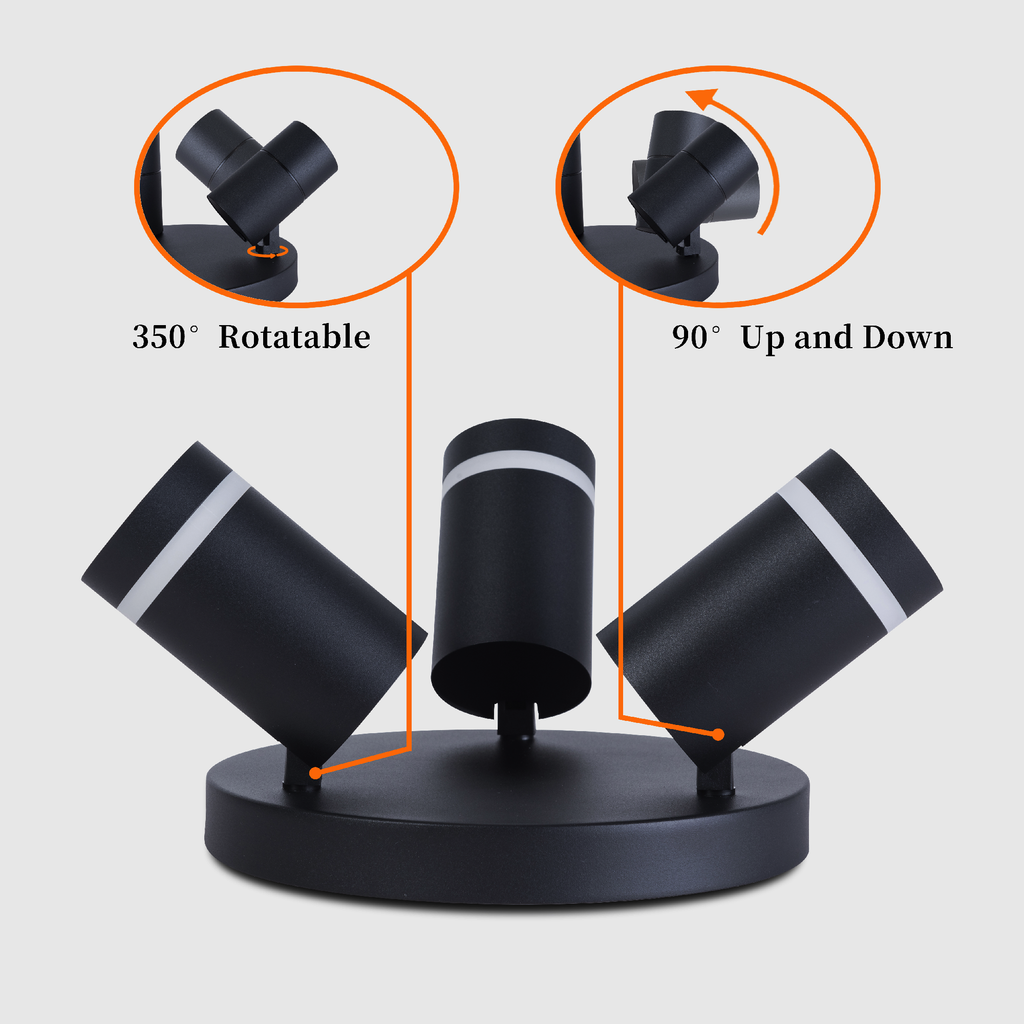 3 Light Spotlight Black, 3 X GU10 35W Max, Φ: 21cm, H: 9.5cm Weight: 1.08kg Non-Dimmable Class 1, IP20