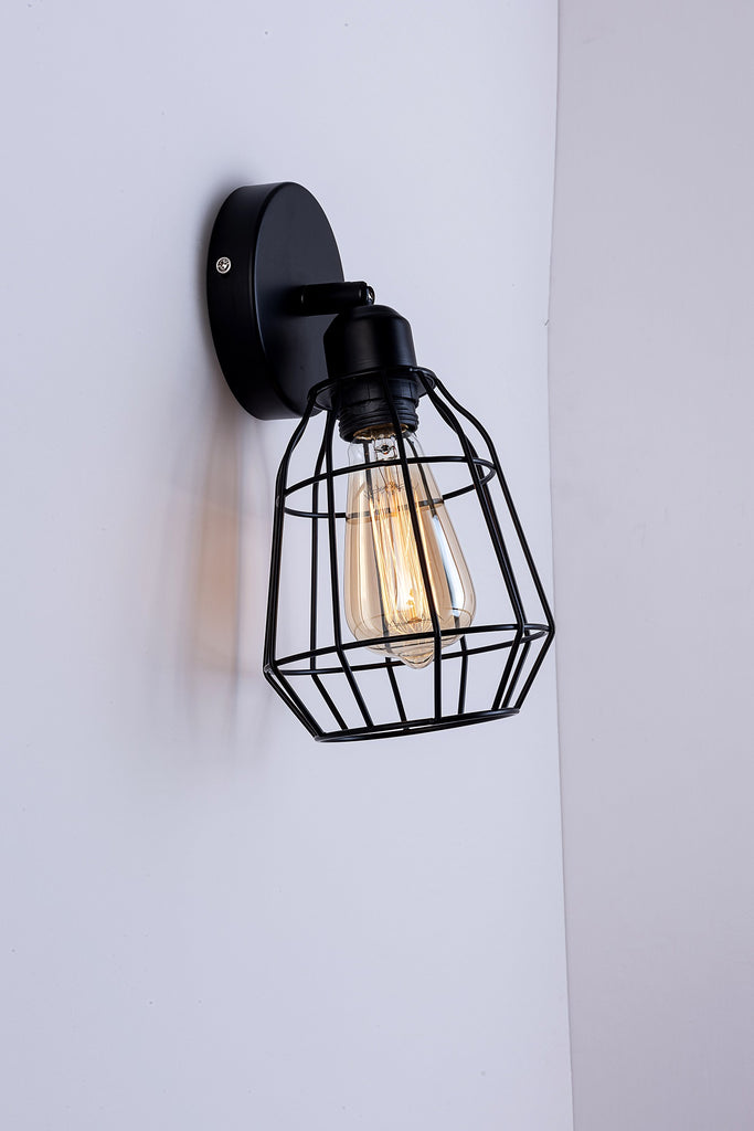 Caged Wall Light, E27/ES Cap, On/Off Switch Black Vintage Finish, LED Compatible