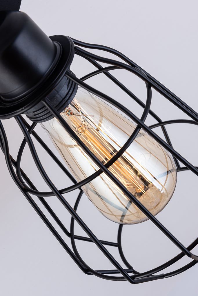 1 Light Black Vintage Finish, Metal Caged Shades, Dimmable (requires Dimmable Bulbs)
